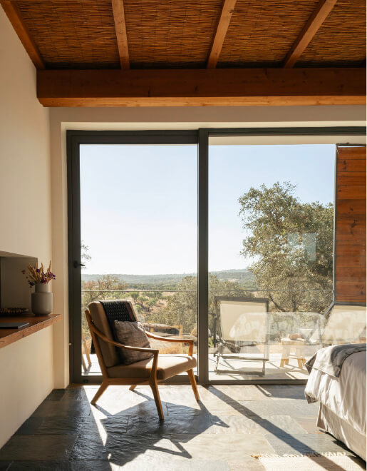 The privileged position of these three rooms allows for wide views over